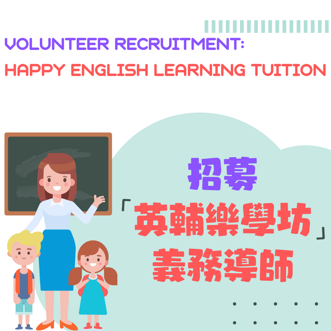 計劃目標: 紓緩區內基層家庭及新來港家庭的負擔,協助孩童解決在學習上的困難,提升學習效能。 導師職責: l 提供英文為主的功課輔導 (小學生為主) 導師要求: l 有良好英語能力 l 有耐性,可以持續參與計劃最少半個學年 上課地點:明愛堅道社區中心 上課日期: 每年10月至翌年6月逢星期日 (公眾假期除外)下午2:00-3:30 (具體上課日期請與有關職員聯絡) 查詢/報名:致電2843 4652